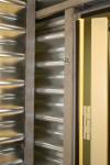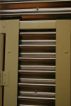 Inside of unit, showing the back wall fastened to the corrugated locker wall