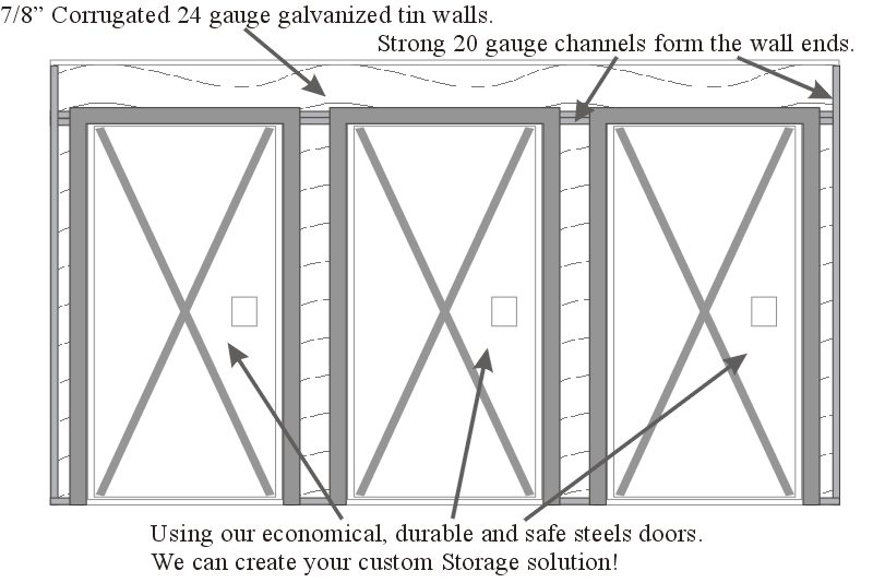 We use our highly durable swing doors and corrugated galvanized steel for the walls.
